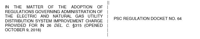 WHEREAS, 26 Del.C. §315(d) provides that the Delaware Public Service Commission (the "Commission") may adopt rules and regulations to administer the DSIC that are not inconsistent with the Public Utilities Act of 1974 (the "Act"); and