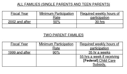 Note: Participants in either one parent or two parent households are exempt from work for your welfare participation if a parent is working 25 30 or more hours per week in a non-subsidized job.