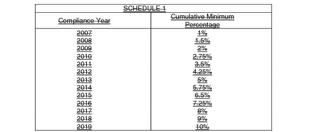 3. The Commission continues to hold the authority to issue rules to implement the Act. See 26 Del.C. §362 (2006 Supp.). As noted, the proposed revisions are intended to mirror the recent changes in the statutory requirements. For example, the revisions incorporate the new "Schedule I" that increases the percentages of retail sales that electric suppliers must meet with renewable energy credits. Section 3.2.1.2 The proposed revisions also implement the new requirement that electric suppliers also concurrently acquire, as part of their yearly portfolio obligation, specified levels of "solar renewable energy credits." Section 3.2.1.3 In addition, the proposed revisions provide for the statutory increases to the dollar amounts of "alternative compliance payments" for renewable credits and institute a new solar alternative compliance payment regime to be available as an alternative to solar renewable energy credits. Section 3.3.4.4