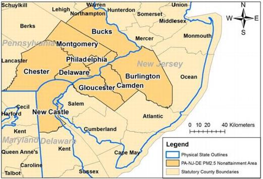 Figure 2???1 Philadelphia Nonattainment Area Boundaries - 2006 PM2.5 NAAQS