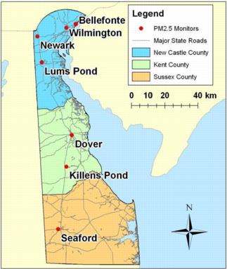 Figure 3-1 Delaware???s PM2.5 Monitoring Site Locations