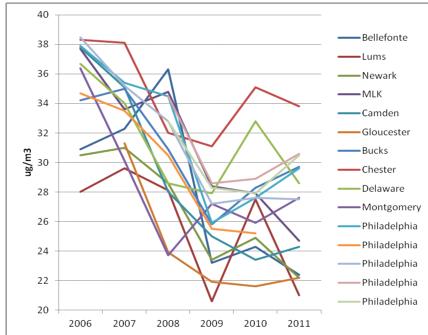 Figure 4-2 Philadelphia NAA ??? 2006 to 2011 daily PM2.5 trends