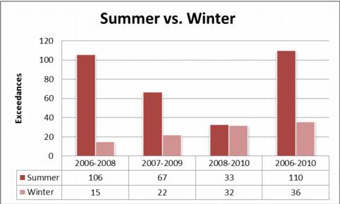 Figure 7-1 Number of Winter vs. Summer Exceedances