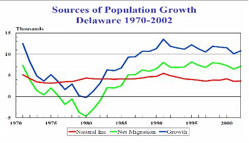 Figure 1-2 Sources of Population Growth in Delaware, 1970 - 2002