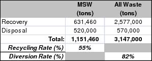 Recycling/Diversion Rate (4): | 65% | 73% | 82% |