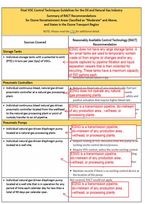 (2) Eastern Shore Natural Gas Company, identified in the ICR Part 2, is not an oil or natural gas production and processing facility, but has two boosting stations (Permits#: APC-1996/0895-Operation, and APC-2005/0031-Construction/Operation) as part of the local natural gas transmission and distribution system. Upon request, the company provided the Department its status regarding the 2016 Oil and Gas CTG RACT summary sheet (see Attachment 2).