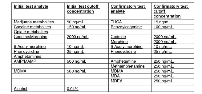 4.3 Employees subject to drug testing shall be tested using at a minimum a seven-panel protocol testing plus alcohol screening for the following:
