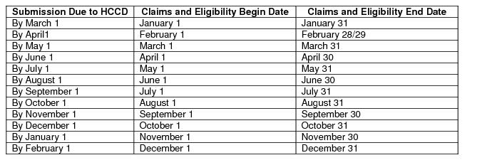 b. Reporting Entity shall submit Required Claims Data to the HCCD according to the schedule set forth in Attachment A, Reporting Schedule, of the HCCD Regulations, or as mutually agreed. The schedule is included herein for convenience, but in case of conflict between this Agreement and the HCCD Regulations, the HCCD Regulations shall take precedence.