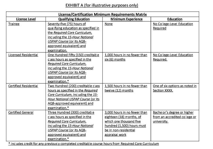 2.1.1 The qualifications for licensure or certification shall conform to the criteria established by the Appraisal Qualifications Board (AQB) of the Appraisal Foundation for: