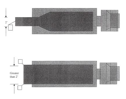 5.4.1.4 For height clearance, the survey shall guarantee that no portion of the movement shall be within three or six inches, dependent on overall width, of any overhead object. If the permitted vehicle is forced to leave the right lane of travel to avoid an overhead obstruction, maneuver through a work zone, or arrangements need to be made to move any overhead object, the route survey must note the necessary impacts.