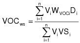 VOCws = The daily-weighted average VOC content, as applied, of the coatings used on a coating unit, line, or operation in units of mass of VOC per unit volume of coating solids.