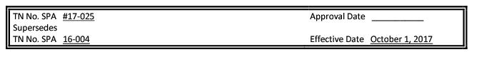 The provisions of this state plan amendment (SPA) are subject to approval by the Centers for Medicare and Medicaid Services (CMS). The draft SPA page(s) may undergo further revisions before and after submittal to CMS based upon public comment and/or CMS feedback. The final version may be subject to significant change.