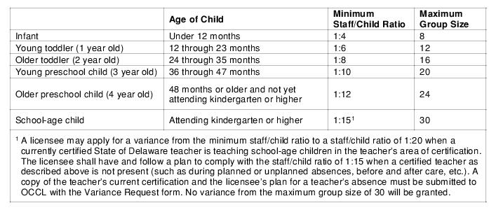 The purpose of these regulations is to protect and support the health, safety, well-being, and positive development of children who receive care in early care and education and school-age centers. These regulations establish minimum standards that licensed centers are required to follow. Licensed centers may exceed the regulations set by the Office of Child Care Licensing (OCCL) by joining Delaware Stars for Early Success or by the licensee's own efforts.