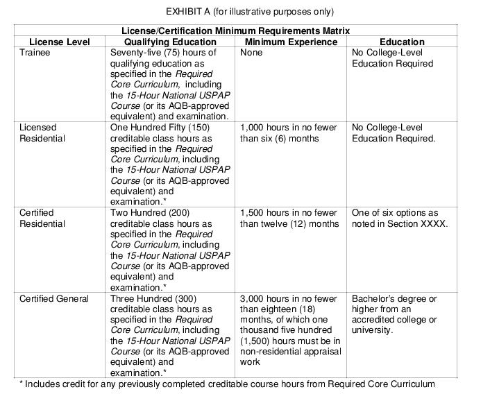 2.1.1 The qualifications for licensure or certification shall conform to the criteria established by the Appraisal Qualifications Board (AQB) of the Appraisal Foundation for: