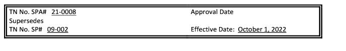 The provisions of this state plan amendment (SPA) are subject to approval by the Centers for Medicare and Medicaid Services (CMS). The draft SPA page(s) may undergo further revisions before and after submittal to CMS based upon public comment and/or CMS feedback. The final version may be subject to significant change.