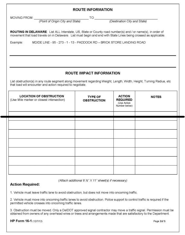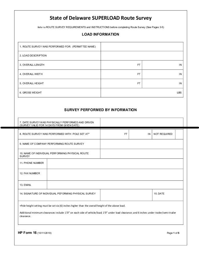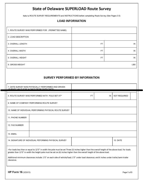 Figure A.2: HP Form 16 State of Delaware SUPERLOAD Route Survey Form