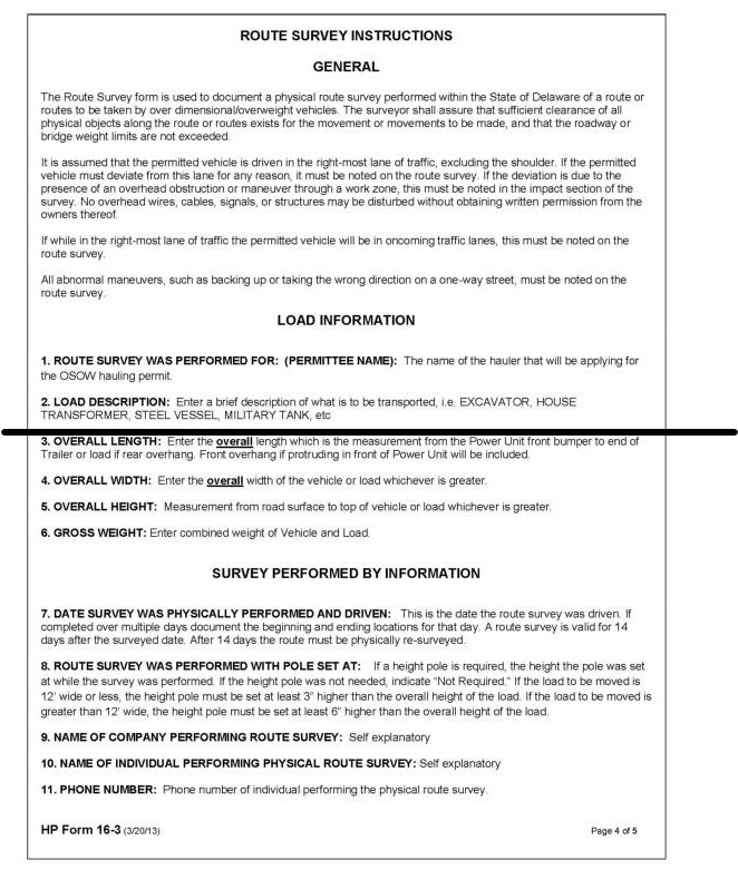 A.2 HP Form 16 State of Delaware SUPERLOAD Route Survey